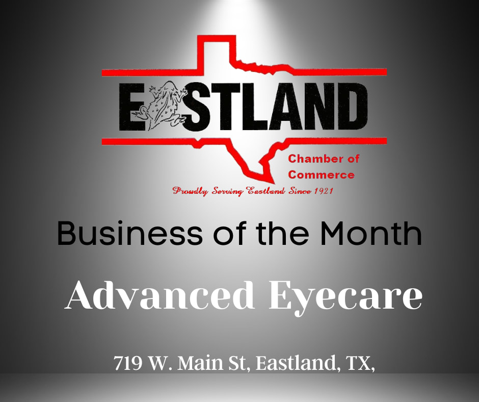 Join Advanced Eyecare on Tuesday, January 24th from 12:00 - 1:00 pm at 719 West Main Street in Eastland to celebrate January Business of the Month. We will have a pizza luncheon and networking hour.