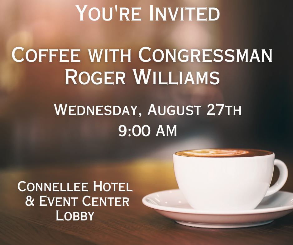 Drop by the Connellee for coffee & donuts and meet US Congressman, Roger Williams.