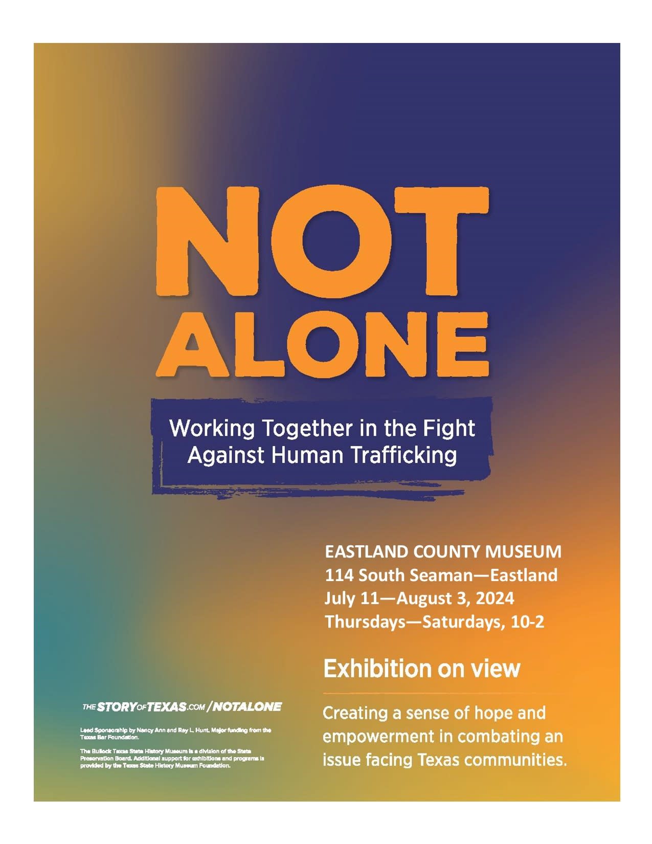 NOT ALONE - Working Together in the Fight Against Human Trafficking. Exhibition on view at the Eastland County Museum.