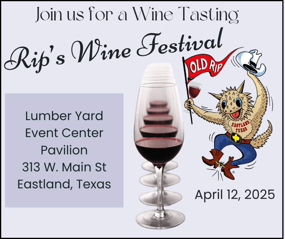 We would like to invite you to join us for Rip’s Wine Festival in Downtown Eastland. The festival will take place under the Pavilion next to The Lumber Yard Event Center at 313 W. Main St. We are looking for 5-8 wineries during the event and looking forward to a large crowd.