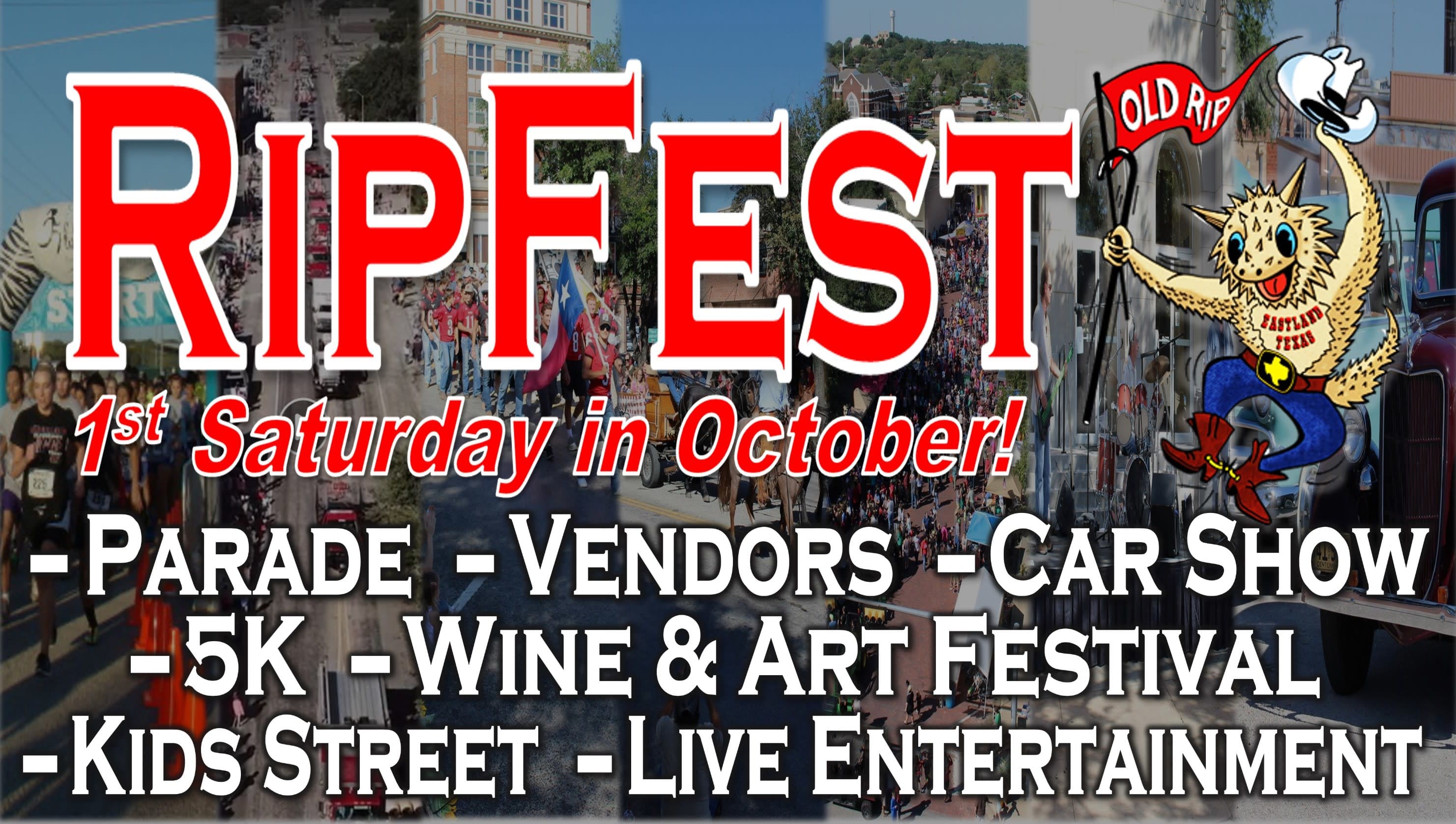 Everyone's favorite day in Eastland Texas includes Ripfest with a 5K race, a large parade, vendor booths, live entertainment, kids street, and tons of food!